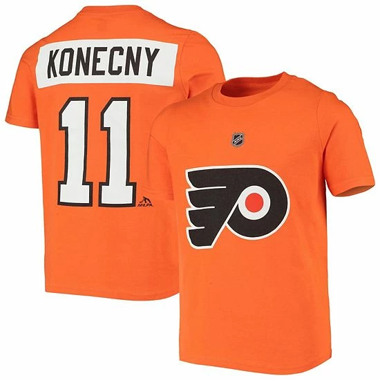 There is no denying your youngster’s love for the Philadelphia Flyers. They’ve been an active hockey fan ever since you first introduced them to the sport, and now you want to get them some awesome gear to help them rep their favorite NHL player. This Travis Konecny Name and Number T-shirt is the top that’ll get any young fan excited, especially your young Philadelphia Flyers supporter. With incredible graphics honoring Travis Konecny, it’s the perfect choice for your kiddo!