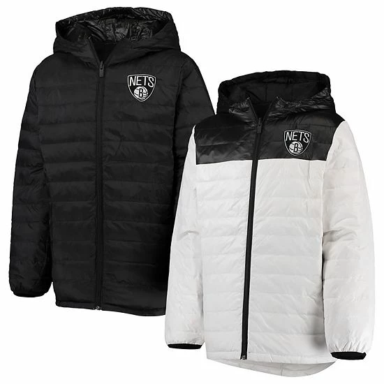 You can happily pack it and reverse it on game days by grabbing this Brooklyn Nets Double Dribble puffer jacket. Along with a full-coverage scuba hood and convenient packability, its reversible feature allows you to switch things up whenever you want. Best of all, both the carrying bag and top bring vibrant Brooklyn Nets graphics that add a pop of flair to any getup.