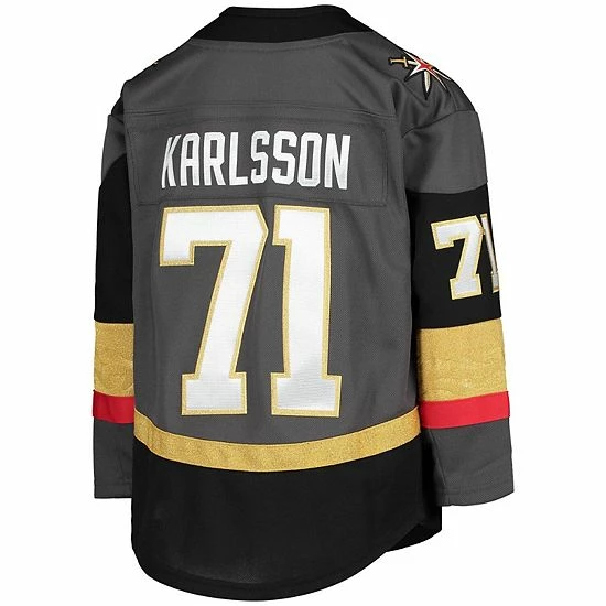 Showcase your youngster’s one-of-a-kind swagger and budding hockey fandom with this Vegas Golden Knights William Karlsson Home Premier Player jersey. This piece of gear is just what your kiddo needs for their game day collection. This unique jersey will be a staple in your young fan’s Vegas Golden Knights wardrobe, with its bold design and crisp team graphics.